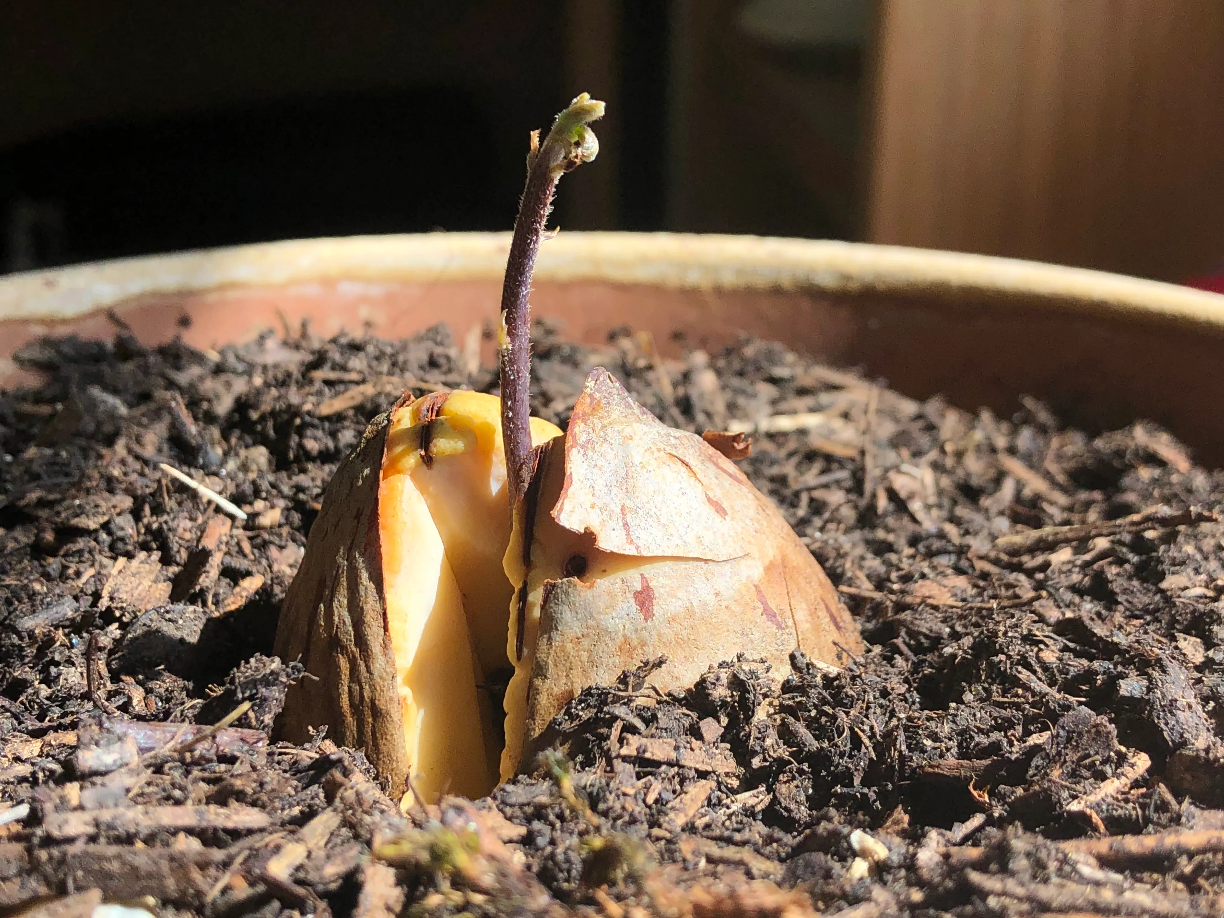 The Avocado: Sprouting!August 3, 2019 · 1 min read · blogThe AvocadoAvocadoGardeningPlantSproutThis is our first successful attempt at sprouting an avocado!